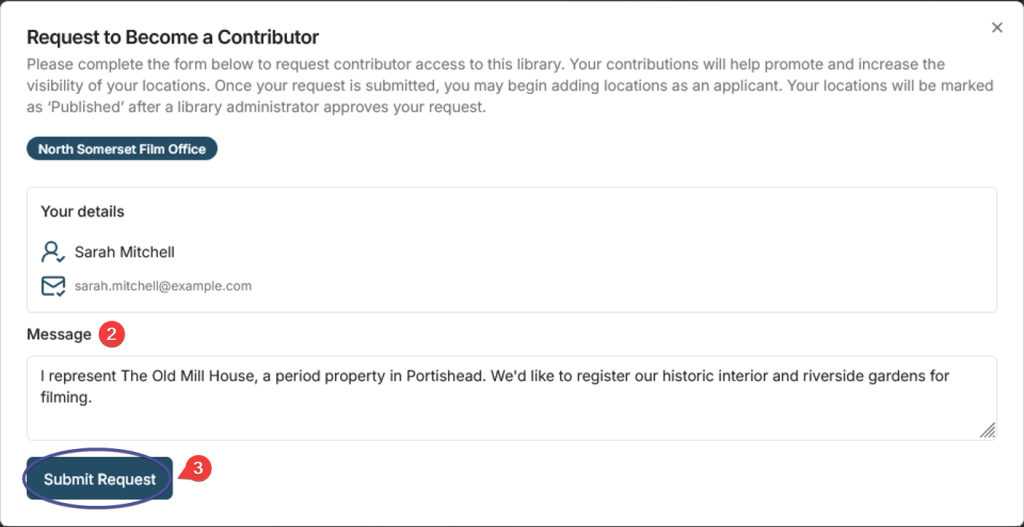 Once your account is verified, visit the North Somerset Film Office library page and click “Become a Contributor“.