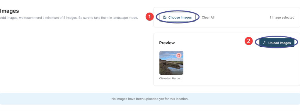 Minimum Requirement: We recommend uploading at least 5 images of your location.